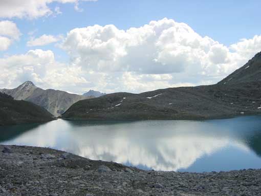 Lajet da Lischana (2857 m). Hinten der Abstieg durch die "Fora da l'Aua" nach Alp Sesvenna - S-charl.