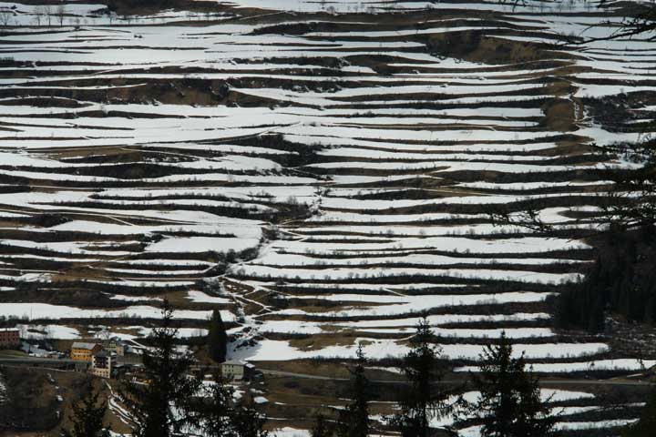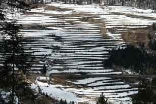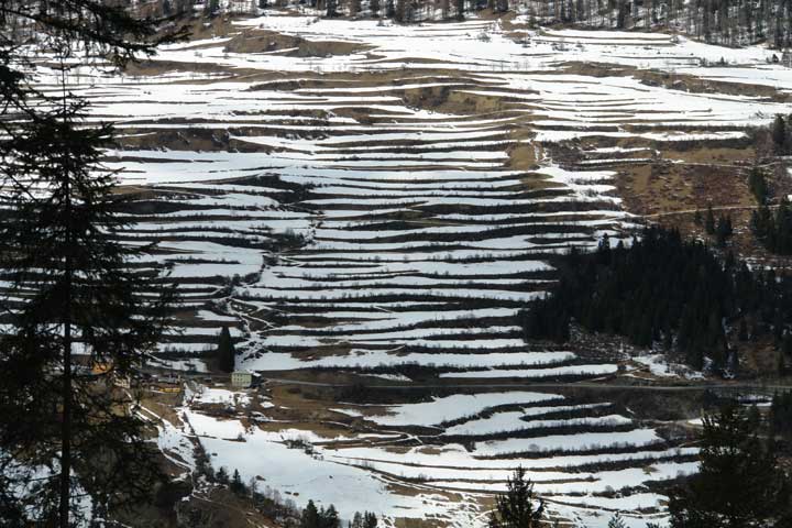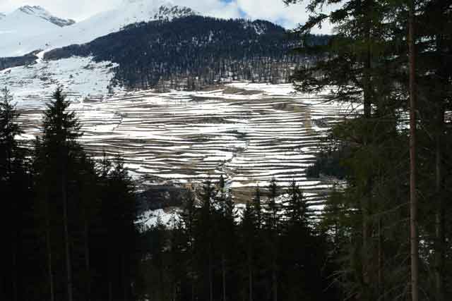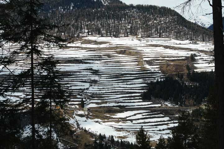 Die Terrassen erstrecken sich von "Chanvers" (Hanfäcker) am Inn (1100 m ü. M.) bis "Plattas" (1540 m ü. M.)